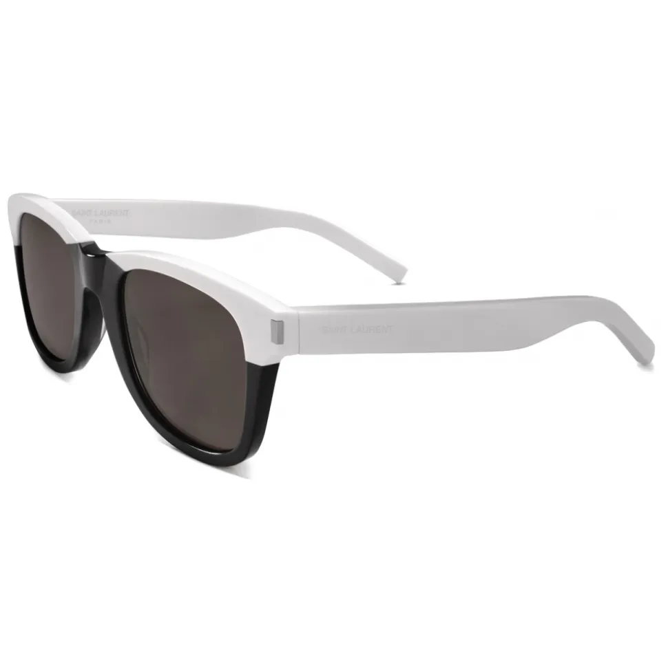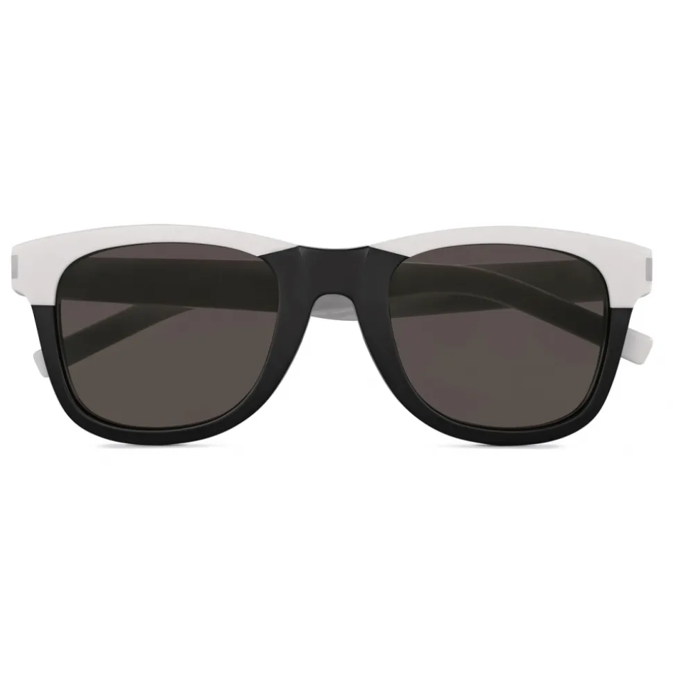 Square Wellington-shaped sunglasses featuring nylon lenses and leather and acetate temples.